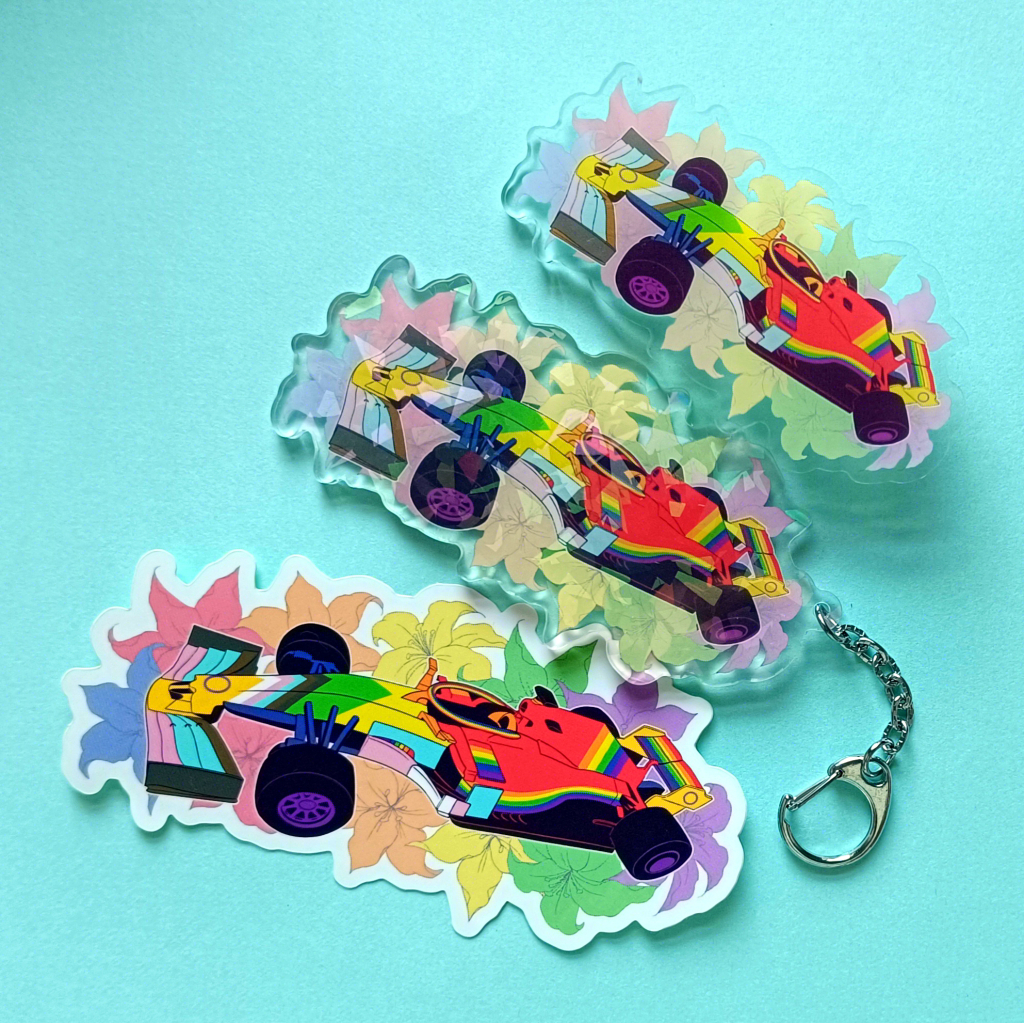 I got the rainbow f1 keyring and the pan f1 sticker and I couldn’t be happier. The keyring is so well made, it feels like it will last a lifetime and the actual attachment is hinged so it’s amazing for people with dexterity issues. Also, the holographic detail is flawless. It’s just so beautiful! The sticker is also really great quality, doesn’t tear as you lift it from the backing, and the attention to detail is insane for the price.
